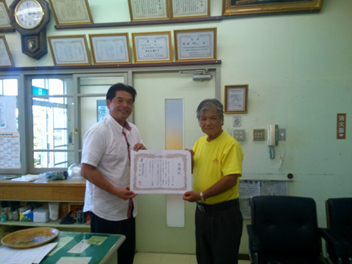 国頭村奥間区より感謝状をいただきました